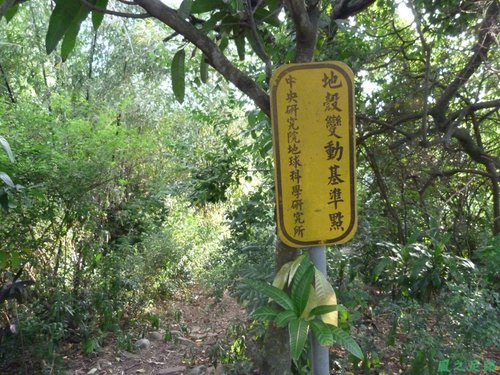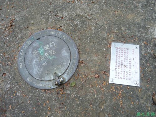 ( 中央研究院科學研究所地殼變動基準點牌子 )