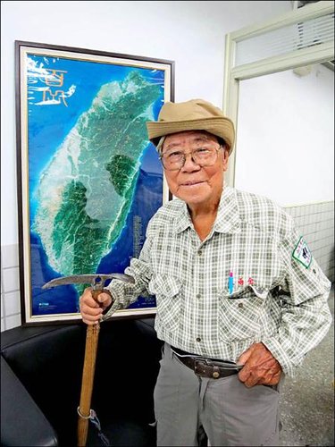 八十八歲的林兩全四十九歲才學爬山,卅餘年來投資逾一棟房產價值登山,完成百岳,連玉山都爬過七十二次,是山友界有名的「登山教授」。(記者蘇孟娟攝)