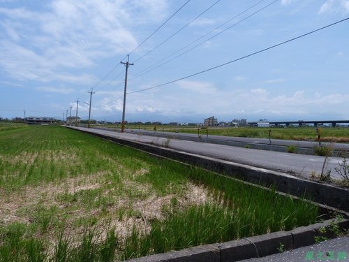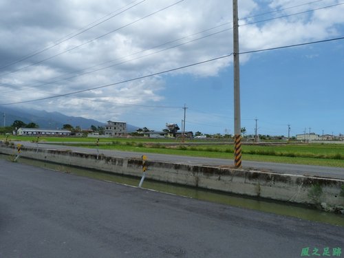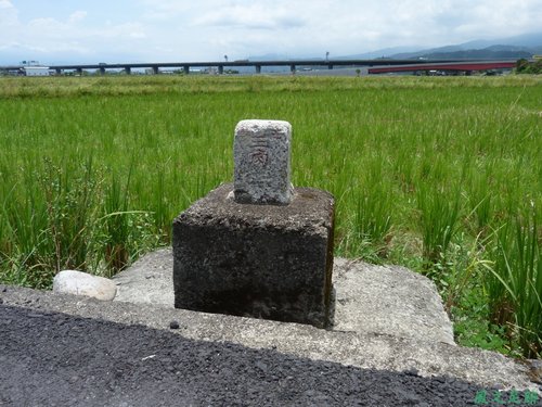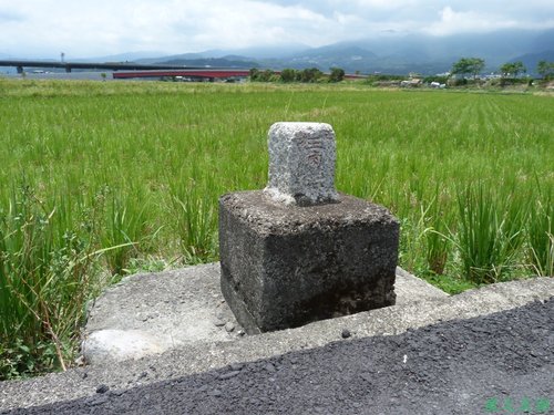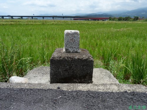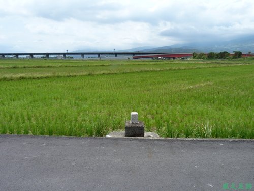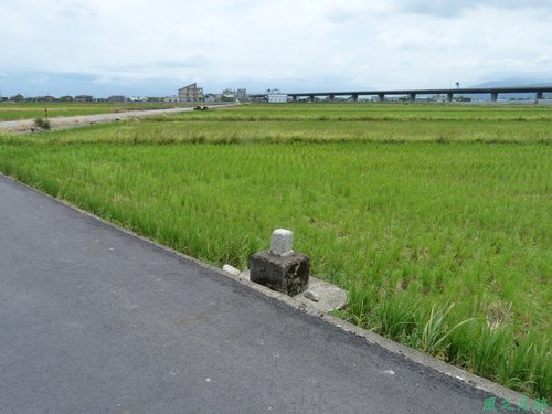 ( 左轉沿左側排水溝渠前行,即可見到前方不遠處之排水溝渠對面、路右稻田路旁的基石 )