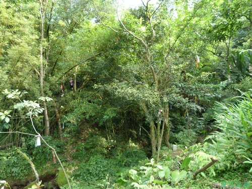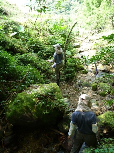 ( 小溪上來往基石的路為一小段雜草叢生小瘦稜,還是要步步為營、以免不小心摔跟斗 )