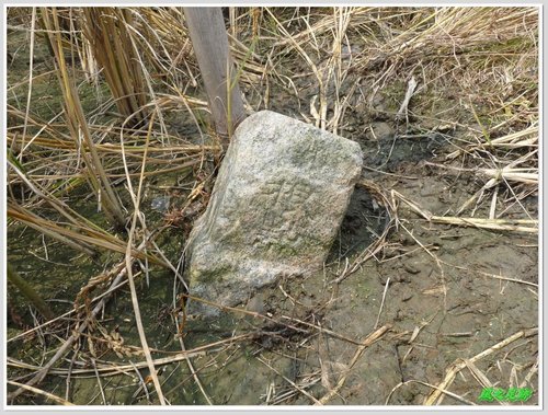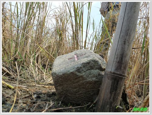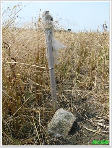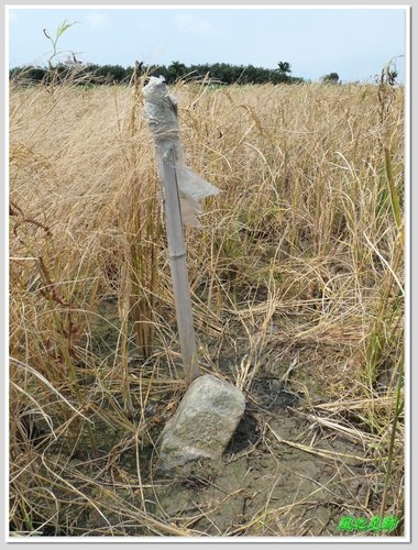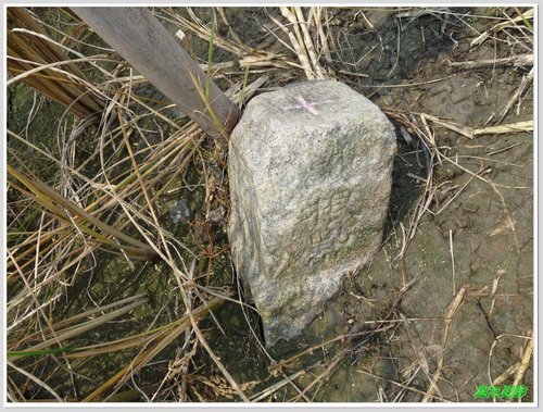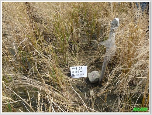 這半年多來曾順路造訪至少五次,追溯至去年(2012年)7月7日,於炎熱的暑假期間、找到還歪斜立在枯黃稻田裡的七十分土地調查局圖根點。之後在2012年10月14日依小孩臨時提議、順路再拜訪七十分圖根點,這次在天色已黑的稻田老位置並沒看到圖根點、大夥著實嚇了一大跳!尋覓後才發現圖根點已被連根拔起,橫躺在稻田靠路邊的泥水中,大夥七手八腳把它重新豎立在原橫躺位置,此處並立有應該是原來點位的一根竹管標示位置。那時大家還是有點擔心基石會不會遺失,想想都已在這裡立了百年左右了,看位置也應該還算安全,稍事整理後、就北上返家了。