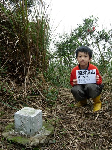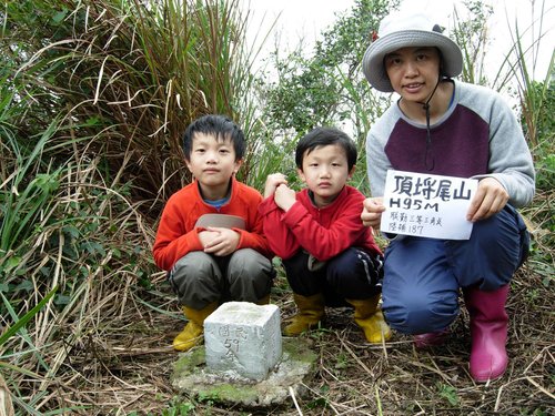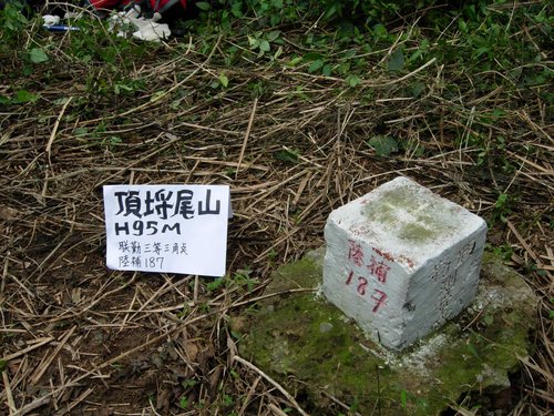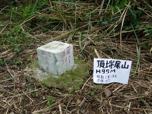 ( 13:14 登頂頂埒尾山:標高95公尺、聯勤測量隊三等三角點陸補187 )