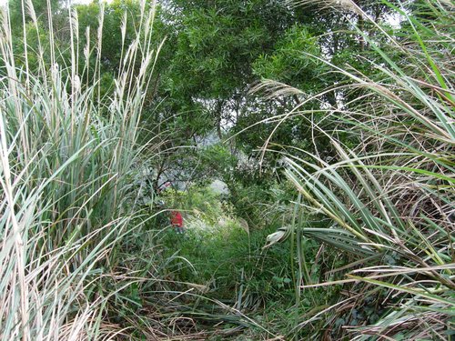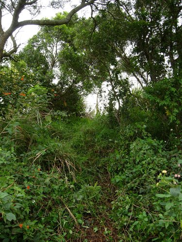 ( 13:08 猶疑一下還是決定鑽入鐵門、而要爬上山頭可也不是好走的陽光大道 )