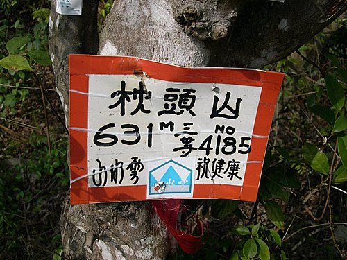 ▼ 13:31 登頂枕頭山 ~ 三等三角點No.4185、標高631公尺