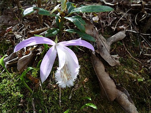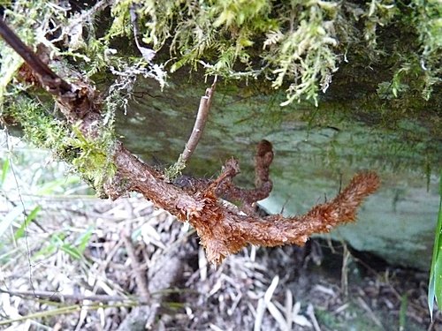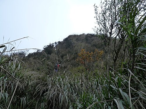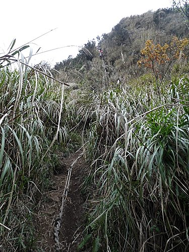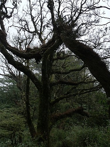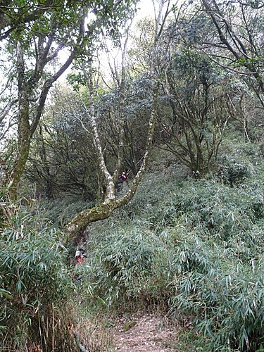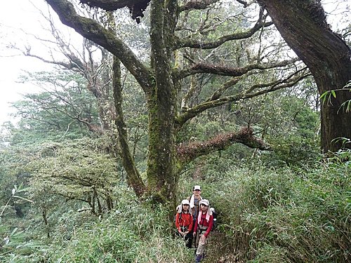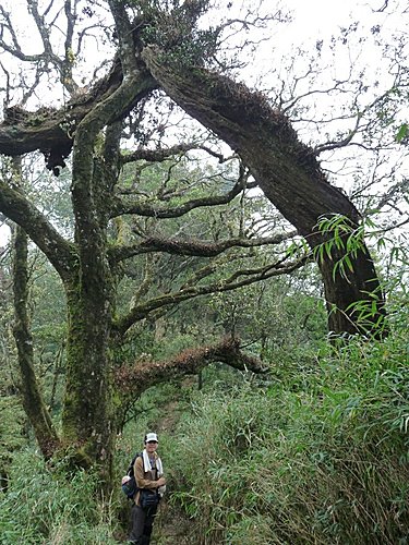 13:00 在一葉蘭最壯觀處賞花休息後續行。往上不久路間有粗大枝幹橫生,有下山山友不小心迎頭撞上、疼痛不已,可得小心
