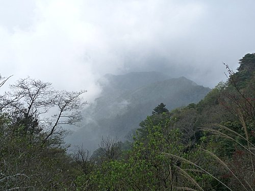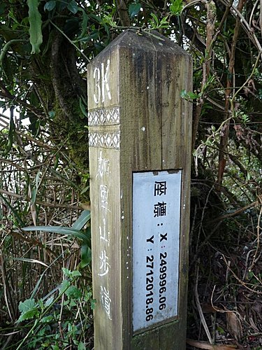 13:06 經 【3K】里程樁。今日雲霧早早升起,本想登高眺望聖稜線全景,看來今天是無望了。GPS h2152m