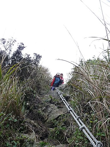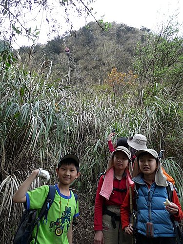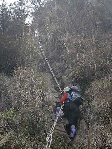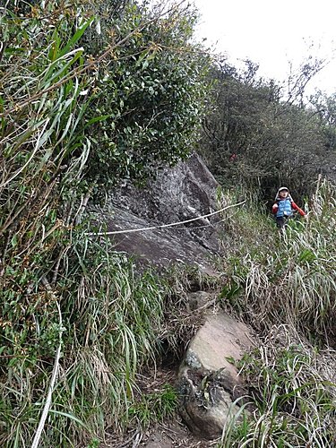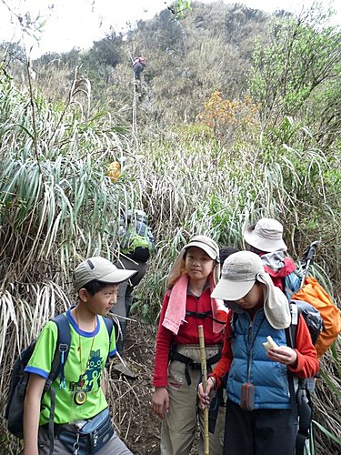 媽咪還在奮鬥中...,看來上方急著下山的山友,可能會踢下碎石...阿彌陀佛!