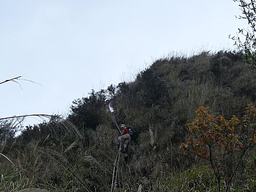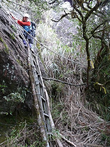 14:17 經陡峭石壁路段,下方架有鋁梯、循序下行