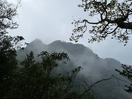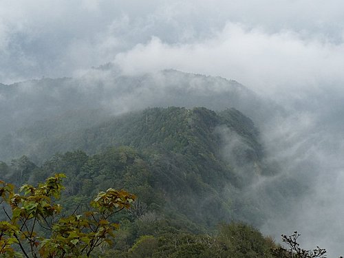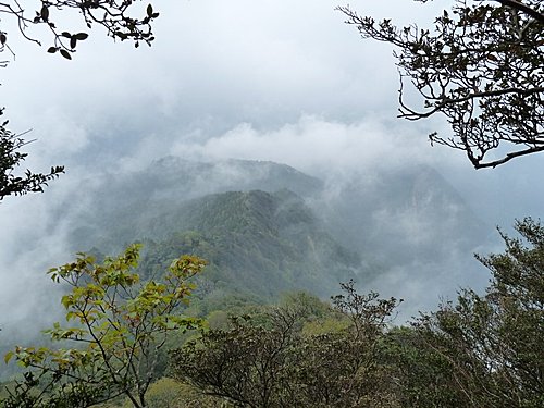 雲霧忽散,山景乍現...前方稜線就是我們走向幽幽風美溪谷的路徑...