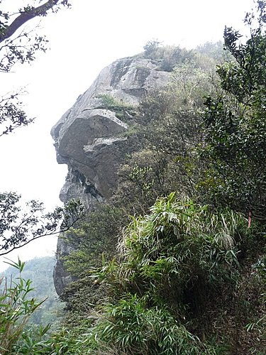 小兒子叫我趕快下來,在雲霧掩來前欣賞這面絕壁,還告訴我說它像...