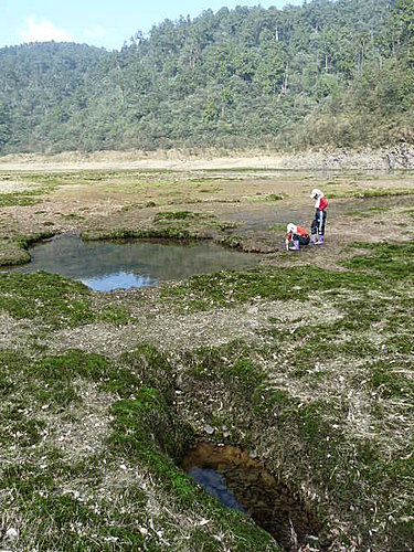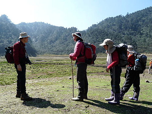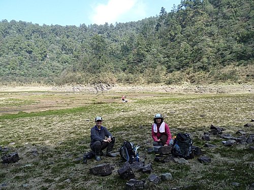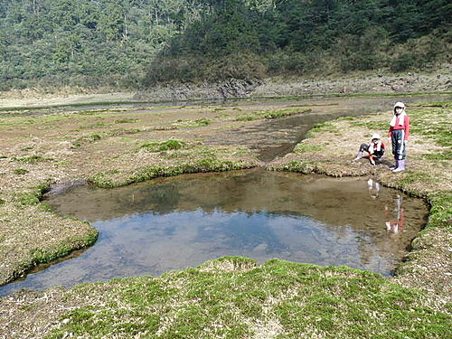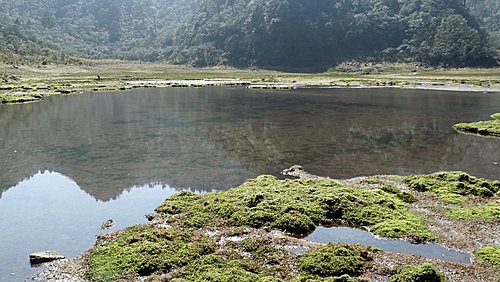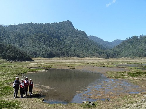 淡水山友也下到湖畔,在湖光山色、天寬地闊間閒話家常