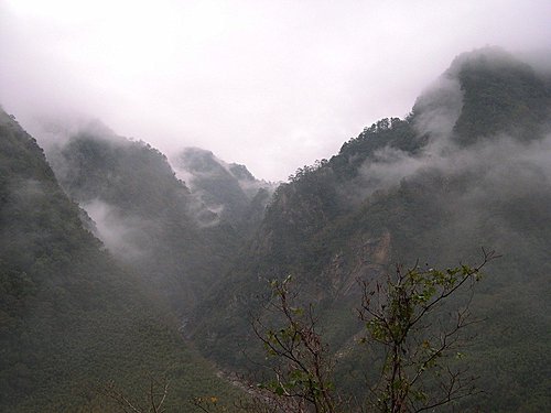 <07:35>上宇老。路上的確開始看見雲霧之中偶而曇花一現的藍色天空,也看到稍縱即逝的山水景致。