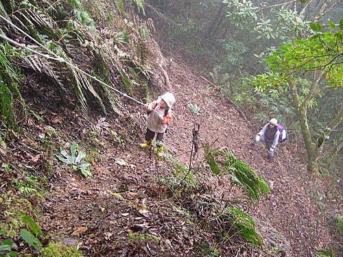 最近看了朝陽前輩的「尖石山區踏查之五—虎禮山、芝生毛台山踏查紀錄」的2/26行程記錄,看見那段輕描淡寫的下山過溪段,又想起了過年前全家在此經歷的驚魂之夜。再看到最近山友的「養老-基那吉-布奴加里坎坷行」記錄,看到那一段由布奴加里山陡下到古道登山口後,要由毀損的小吊橋下溪谷回到古道,再由古道坍方段前下切溪谷,再由溪谷上切回古道的想像過程。依年初親身經歷的路況印象,想想若是不曾走過該處,突然要在那裡找到正確的出口,的確也是不容易,尤其是時間緊迫或天候狀況不佳的時候。