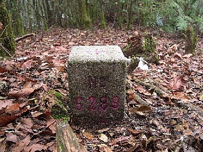 ▲ 兩處登山口之叉路電線桿(噴有已褪色的三角點記號) 。