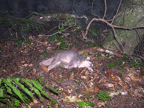 取三叉路左下順陡坡而行, 才走一會就在昏暗的樹林之中,遇到一隻橫躺於步道中的小動物。看起來還非常完整且色澤鮮明,一動也不動的樣子,應該是往生了。天氣已漸暗,無暇再多加觀察,繞過後繼續趕路,此時雨絲也漸漸飄了下來。
