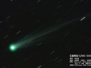 拖著長長的尾巴,散發耀眼的藍白色光芒,這顆就是讓天文迷為之瘋狂的艾桑彗星,隨著它逐漸接近太陽,亮度從14日開始,已經提升到6等以上,用肉眼,就能找到它的蹤影。