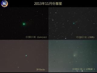 (中央社記者林紳旭台北14日電)中央氣象局今天表示,天文迷有福了,11月共有4顆彗星可觀測,包括Lovejoy、ISON、Encke和 LINEAR,其中ISON最亮。