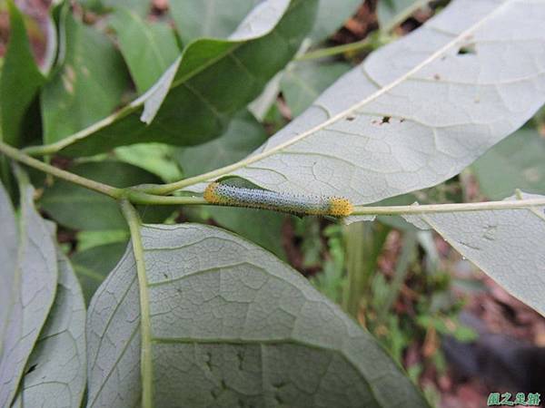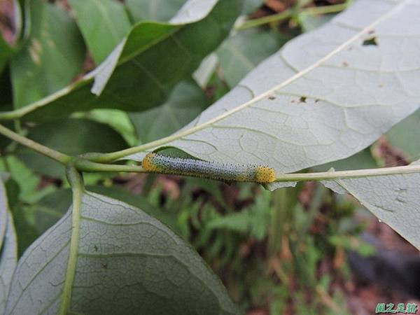 ( 登頂目標山頭基石後回程所拍攝的輕海紋白蝶幼蟲 )