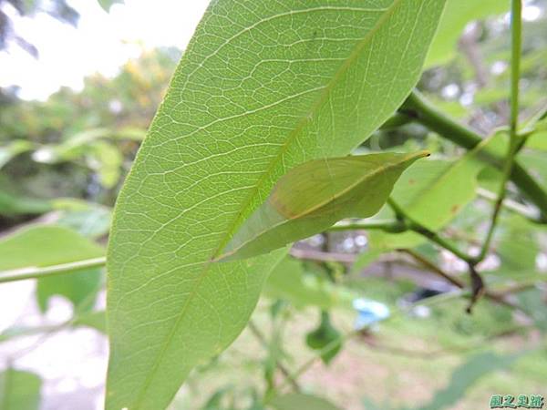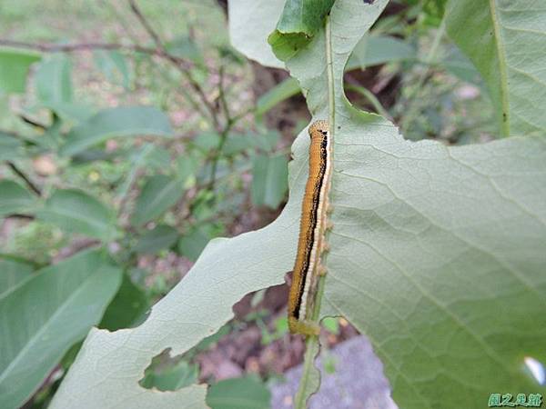 兩天前淡黃蝶蛹附近阿勃勒葉子上發現的淡黃蝶幼蟲 ~